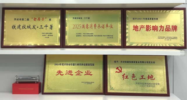 目前,項目公司已陸續取得開封市“好房子”重點項目、開封市住建行業“2024年度先進企業”、開封示范區“2024年度地產影響力品牌”、開封市第二屆“金房子獎”、開封市“2025滿意消費承諾單位”、“紅色工地”等多項榮譽。