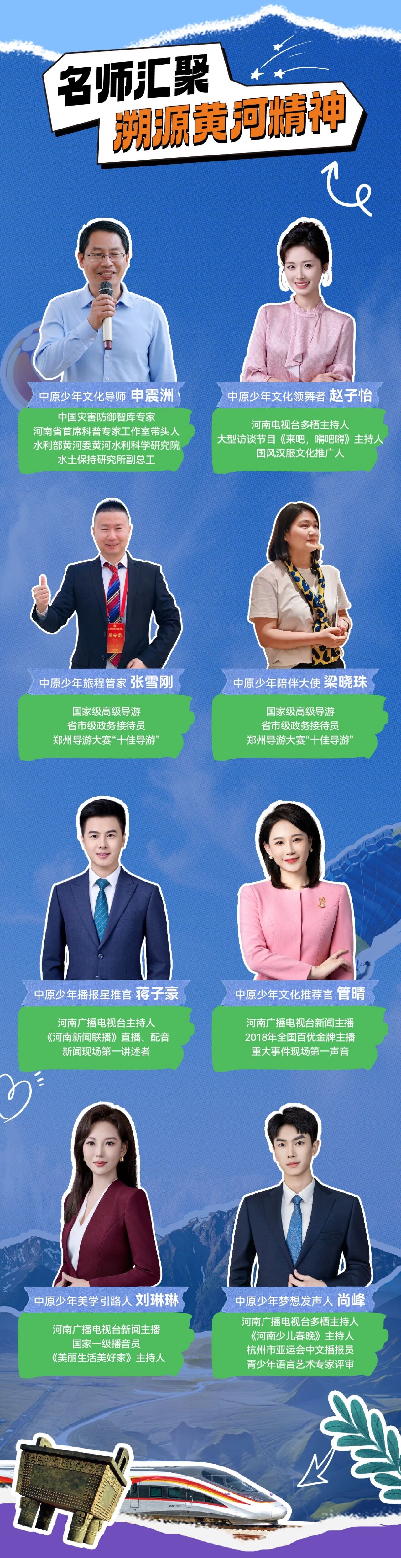5位河南廣播電視臺(tái)知名主持人大咖組成“中原少年星推天團(tuán)”,全程見證少年們的研學(xué)蛻變之,將中原少年的研學(xué)足跡,通過鏡頭傳入千家萬戶,讓黃河背后的故事被更多人看見。